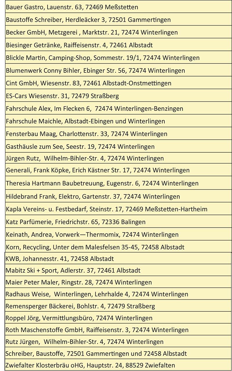 Der FC Winterlingen bedankt sich recht herzlich bei seinen